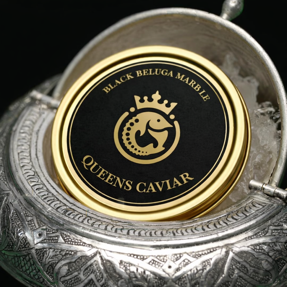 Queens Caviar presents Black Beluga Marble, an authentic Persian Beluga caviar that embodies the pinnacle of luxury, heritage, and refinement. Sourced from the legendary Beluga sturgeon of the Caspian Sea region, Black Beluga Marble is celebrated for its exceptionally large, silky pearls and striking marbled tones of silver to deep gray. Each bead delivers a delicate yet complex flavor creamy, buttery, and elegantly smooth with a lingering finish that melts effortlessly on the palate. Using time-honored Persian curing techniques, Queens Caviar preserves the natural purity and freshness of this rare delicacy. Naturally rich in omega-3 fatty acids, essential minerals, and premium proteins, Black Beluga Marble offers both indulgence and nourishment. Reserved for true connoisseurs, this signature selection from Queens Caviar is not just caviar, it is a statement of sophistication, rarity, royalty, lifestyle, and timeless excellence all in one.